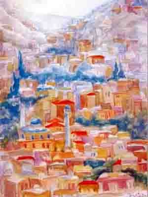 She has organized a number of exhibits in Jerusalem, Amman, and Nablus, and received medals from the Kuwaiti government and the Jordanian League of Artists. She paints with watercolors and oil paints, in addition to making collage art.